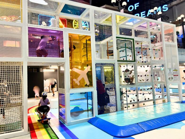 空をテーマにした遊具など遊び心満載で子どもたちがワクワクするようなキッズエリアを紹介していきます。