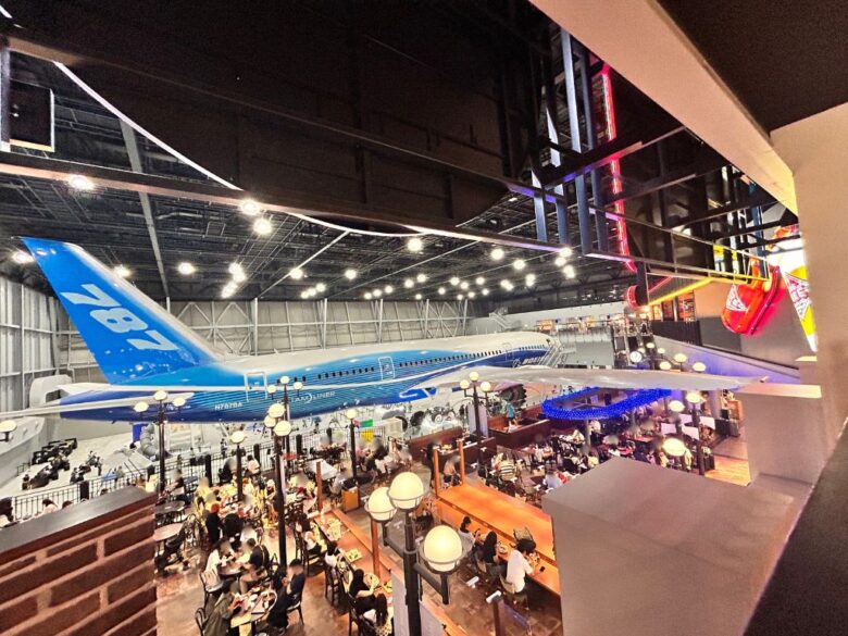 ボーイング787初号機を眺めながら食事が取れるフードコートです。