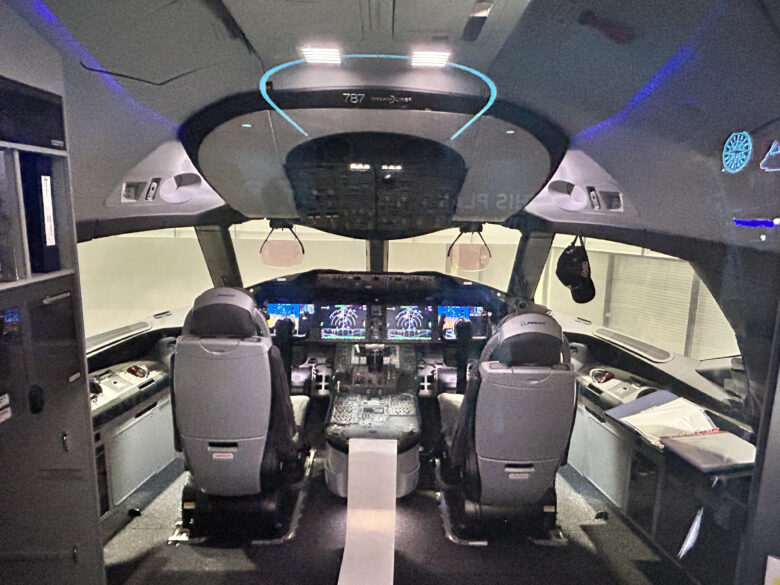 あまり飛行機に興味なさげの女子2人でしたが、せっかくなのでコックピット見学もしました!