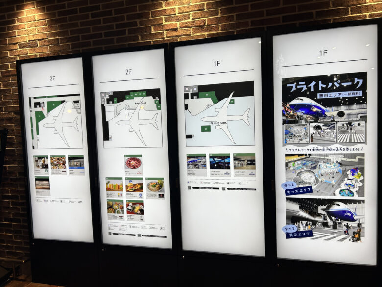 主に1Fが展示やキッズエリア、2〜3Fが食事を楽しめるフードコートになっています。授乳室も2Fにありました!