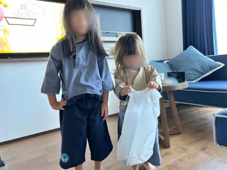 子ども用のパジャマも連絡すれば、歯ブラシなどのアメニティと一緒に持ってきてもらえます。