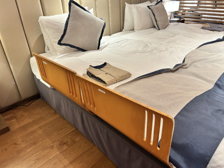 ベッドは予めくっつけてもらい、ベッドガードもつけてもらえました。