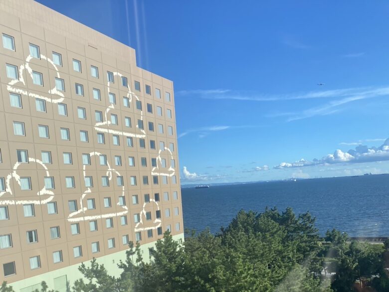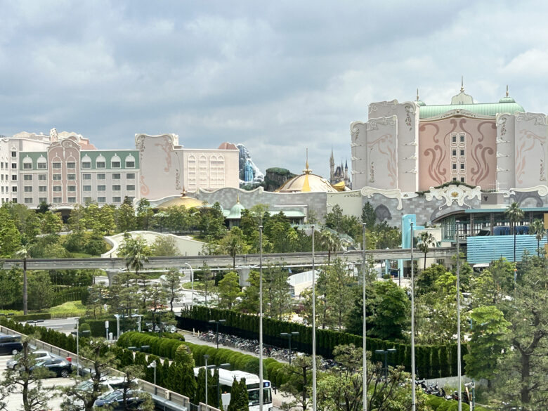 窓から見てもわかるぐらい、ディズニーリゾートラインのベイサイドステーションがすぐそこですね。