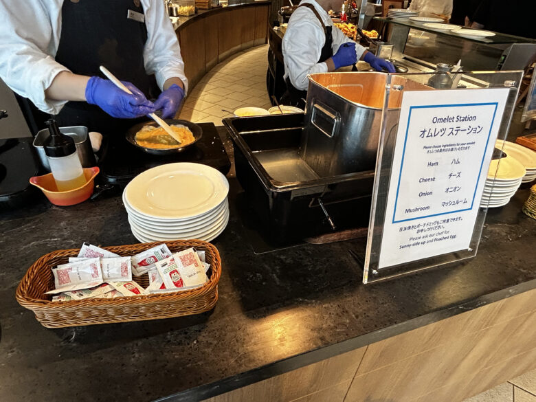 ライブキッチンもあり、その場でオムレツを作ってもらえます。