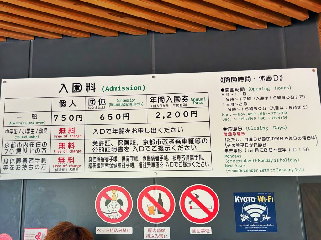京都市内在住の70歳以上の方や、身体障害者手帳等をお持ちの方と付添者1名は無料だそうです。