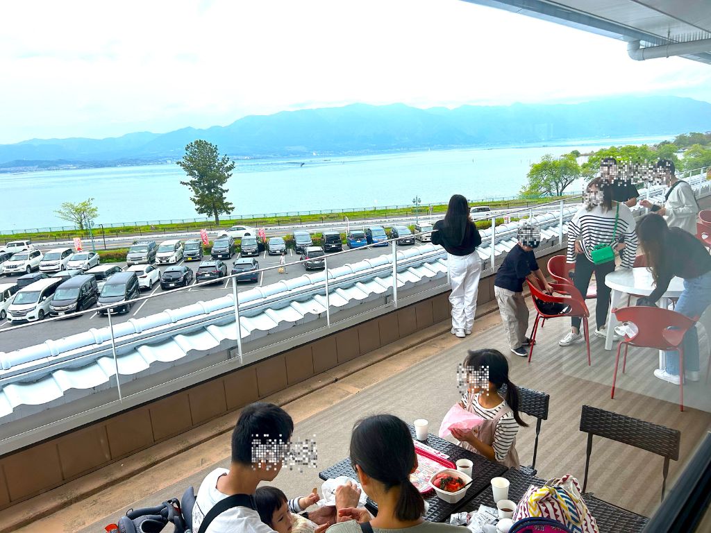 2Fは琵琶湖が一望できるびわ湖サンセットテラスや室内にもテーブルが用意されていました!