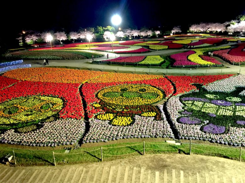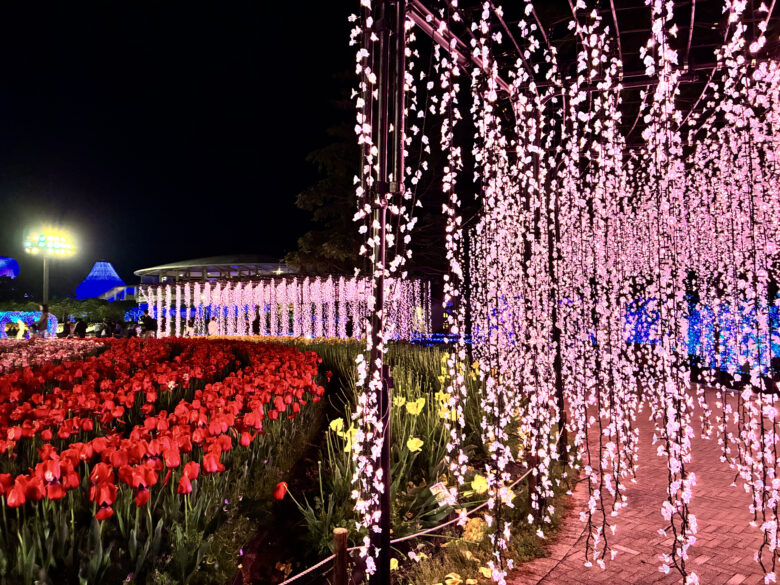 春ならではの花園、夜に本領発揮するイルミネーション、どちらも思う存分楽しむことができたリアルレポです。