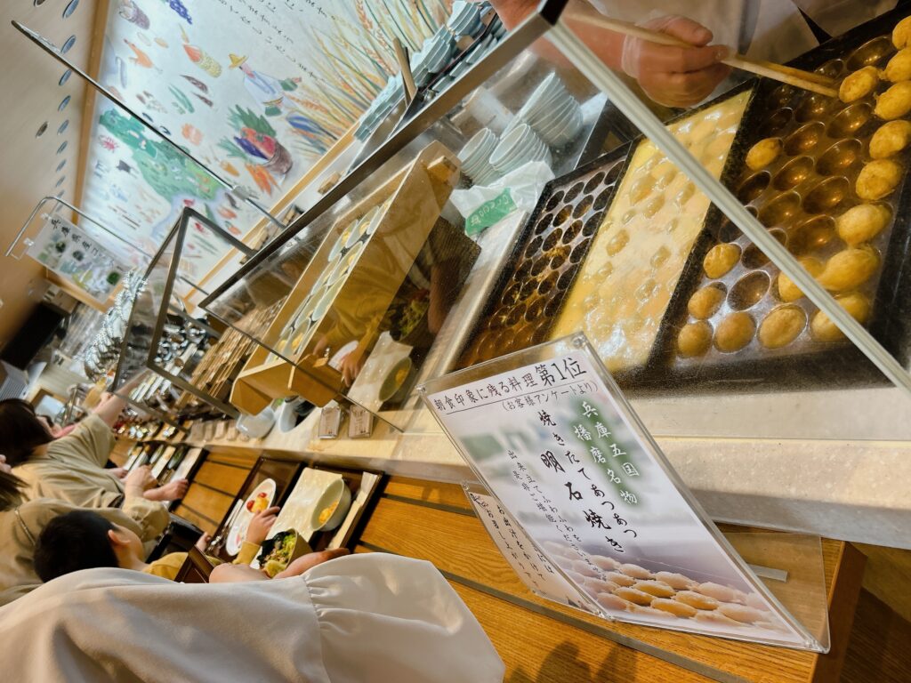 ライブ感をテーマにした朝食ビュッフェというだけあって、目の前で明石焼きやオムレツを作ってくれたり、その場で味を選んでおにぎりを握ってもらえたりします。