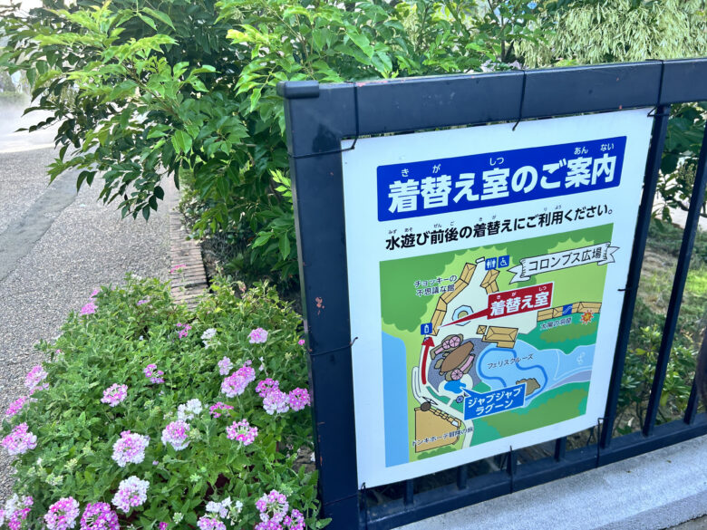 着替え室もすぐ近くに用意されているので、気軽に水遊びを楽しませてあげれます。