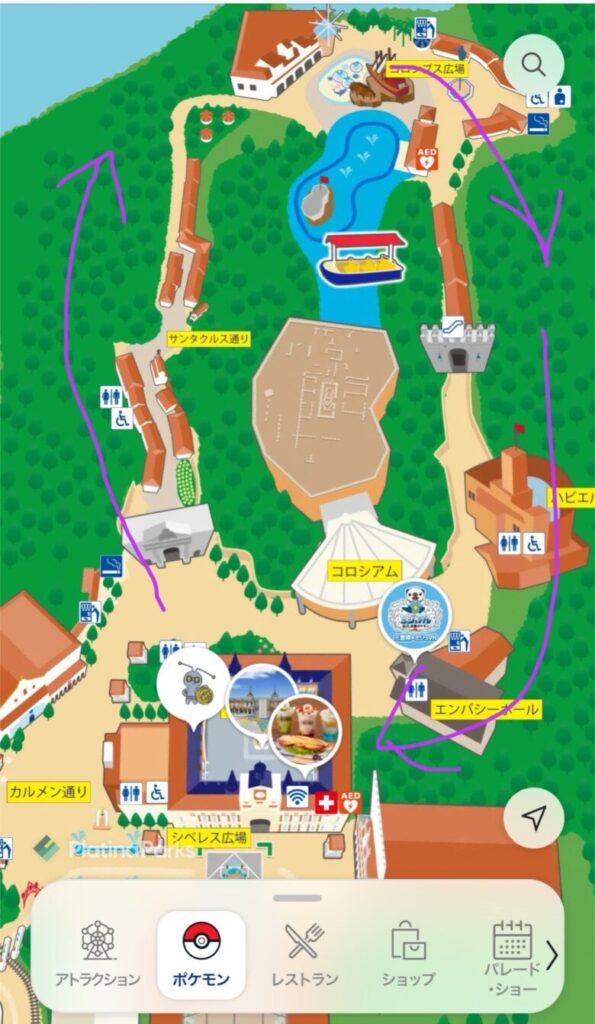 園内のマヨール広場やサンタクルス通りではポケモンのゲームサウンドも流れていて、ワクワクが止まらないこと間違いなしです。