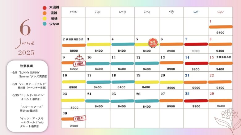 【2025年版】6月最新ディズニー混雑予想&カレンダー|おすすめの日は?