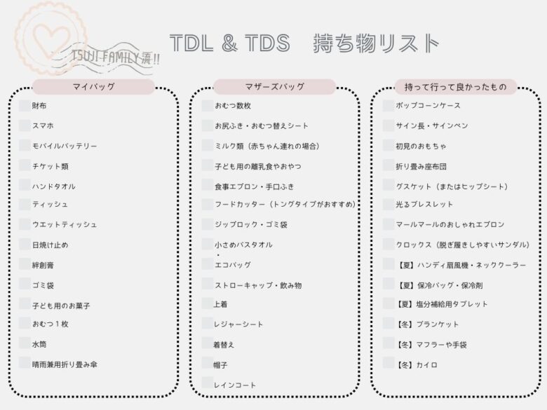 夢の国ならではの持ち物もあるので、チェックリストを見ながら準備してみてください!